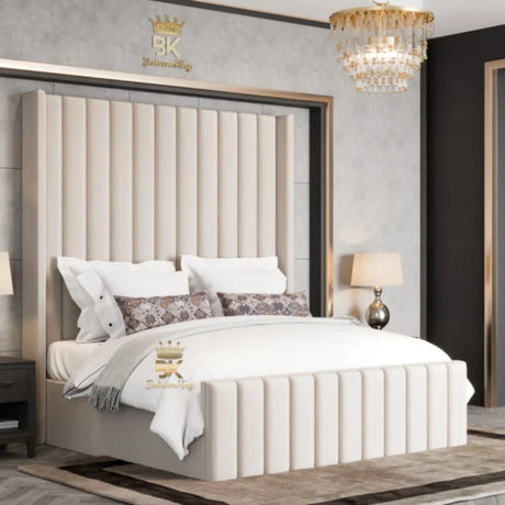 Vermont Upholstered Wingback Bed With High Footboard - Bedroomking